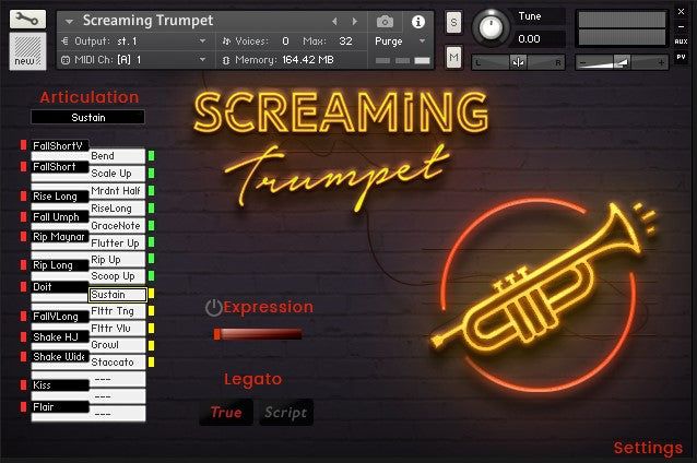 Screaming Trumpet includes true legato samples, but we also include a Script-Legato option - because sometimes that’s the sound you want.